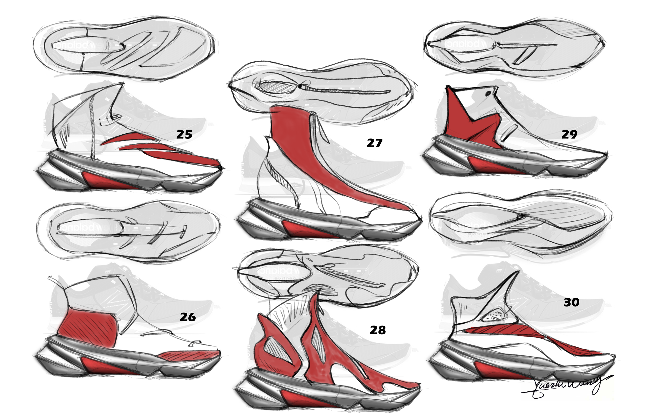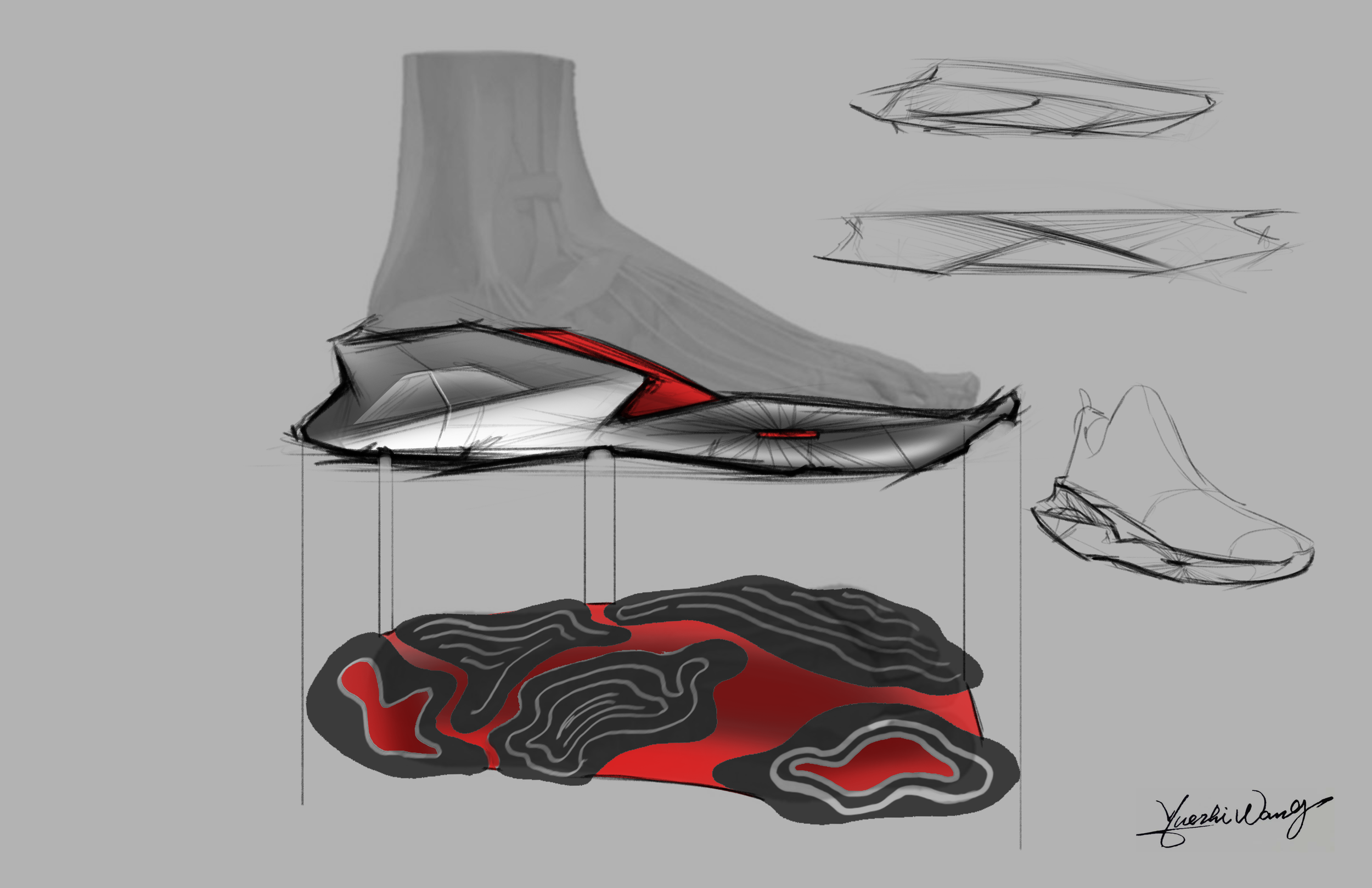 Through biomechanics research, I analyzed foot pressure distribution and dynamic movement patterns in basketball. These insights were applied to the outsole design, optimizing multi-zone pressure distribution and cushioning systems. This enhanced traction and performance while reducing injury risks, showcasing a science-driven approach to innovative design.