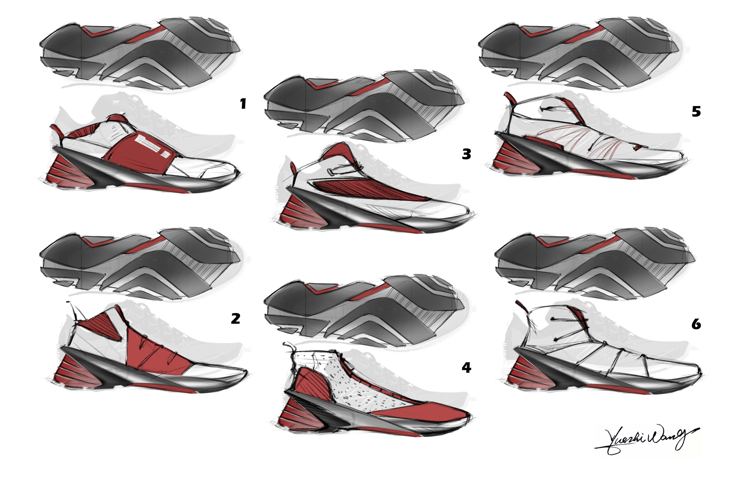 The final design focused on blending performance and aesthetics, inspired by Audi's shimmer finishes and Kyrie Irving's dynamic play style. Research into his movements guided the outsole and midsole design for traction and agility, while sketches explored fluid, light-reflecting visuals. This phase established a foundation for a shoe that balances luxury and functionality.